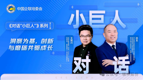 從5000元創(chuàng)業(yè)到資產(chǎn)8.5億元的集團(tuán)公司,從個體業(yè)務(wù)員到行業(yè)領(lǐng)軍者,從國內(nèi)市場到全球布局,鎂神科技的成長之路,是中國民營中小企業(yè)轉(zhuǎn)型升級的生動縮影。此次《對話“小巨人”》的分享,不僅展現(xiàn)了孫文董事長的遠(yuǎn)見卓識與企業(yè)家擔(dān)當(dāng),更彰顯了企業(yè)家的5個核心能力:洞察未來的前瞻力、顛覆以往的創(chuàng)新力、捕捉機(jī)遇的決斷力、面臨危機(jī)的應(yīng)變力、商業(yè)倫理的約束力,同時也體現(xiàn)鎂神科技的初心與使命。未來,鎂神將繼續(xù)以創(chuàng)新為翼,以人才為基,在高端鎂質(zhì)新材料的賽道上勇往直前,書寫更多屬于“中國小巨人”的傳奇篇章!從中國到“一帶一路”,從中國專精特新“小巨人”,到中國制造單項冠軍,到世界級氧化鎂單項冠軍,到世界一流企業(yè)的獨特創(chuàng)新之路!