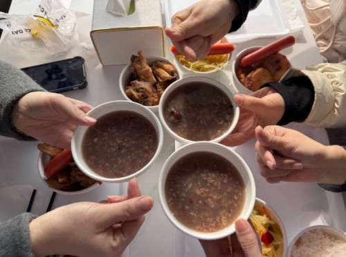臘月初八,時(shí)值中國(guó)傳統(tǒng)臘八節(jié)。食堂內(nèi)粥香四溢,公司為全體員工精心熬制了熱氣騰騰的八寶粥,在這個(gè)寒冷的冬日里送上一份特別的溫暖。